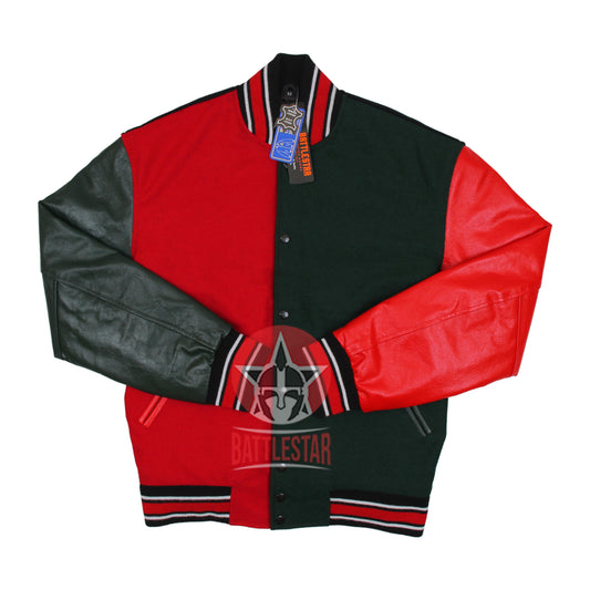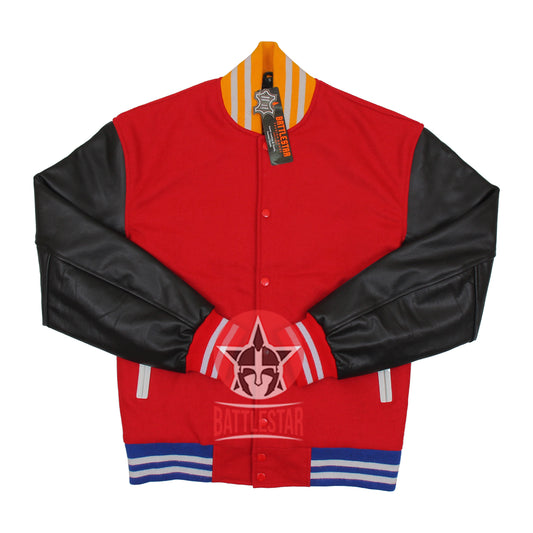 Red Wool Black Leather Varsity Baseball Jacket