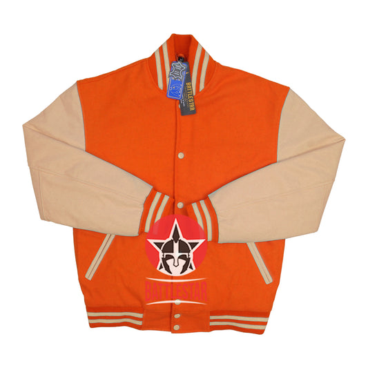 Orange Wool Cream Leather Sleeves Varsity Jacket