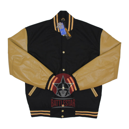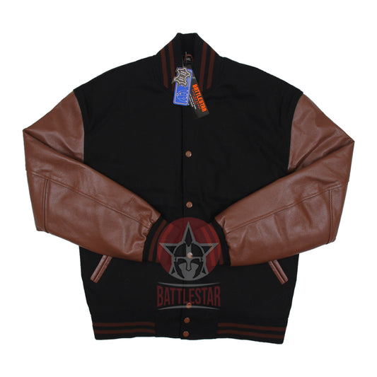 Black Wool Tan Leather Varsity Baseball Classic Jacket