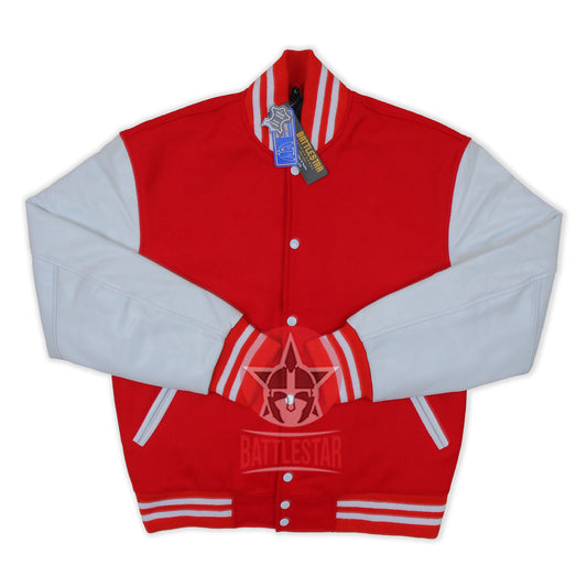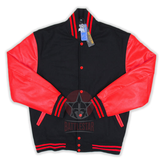 Black Wool Red Leather Sleeves Varsity Baseball Jacket
