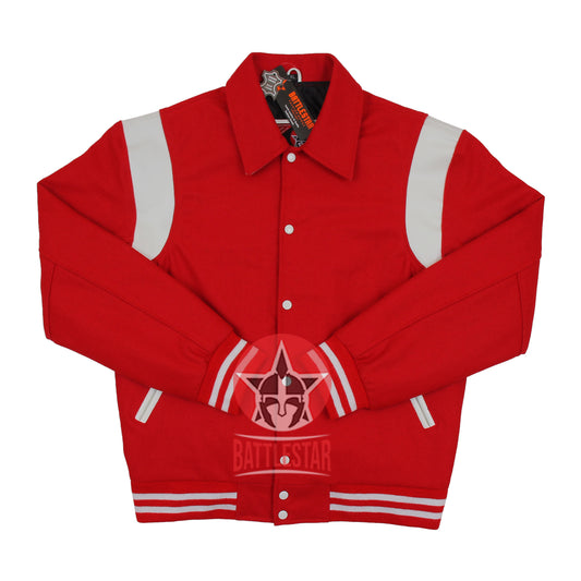 Byron Collar Red Wool White Leather Stripes Varsity Baseball Jacket