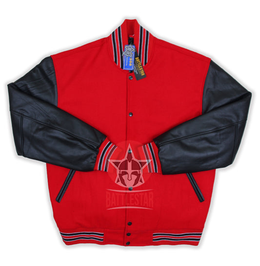 Red Wool Black Leather Baseball Bomber Letterman Varsity Jacket