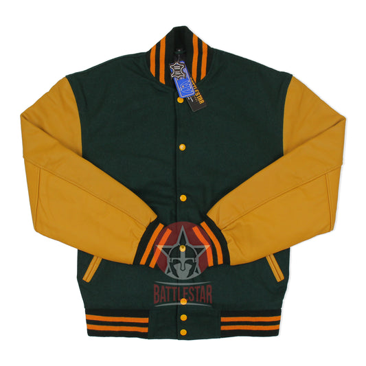 Forest Green Wool Tan Leather Sleeves Varsity Jacket