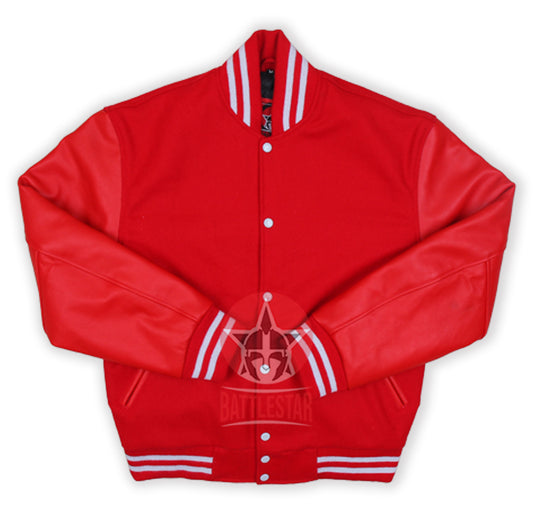 Red Wool & Leather Baseball Bomber Varsity Jacket