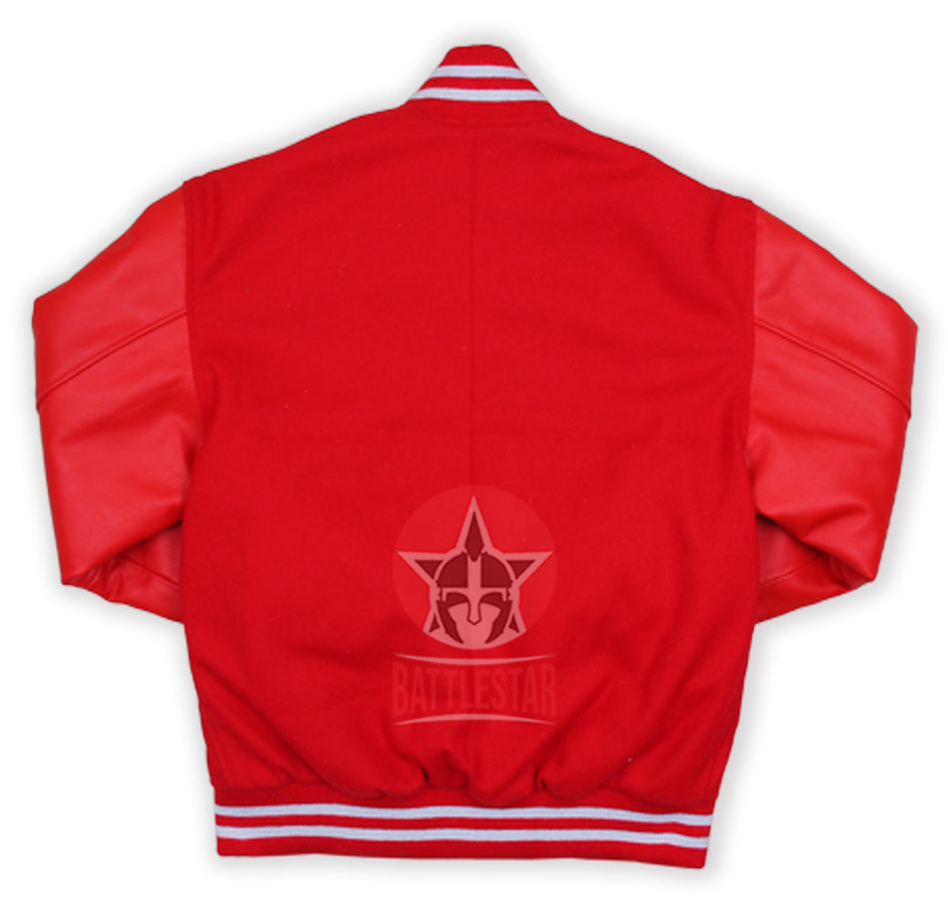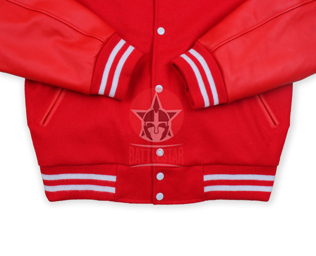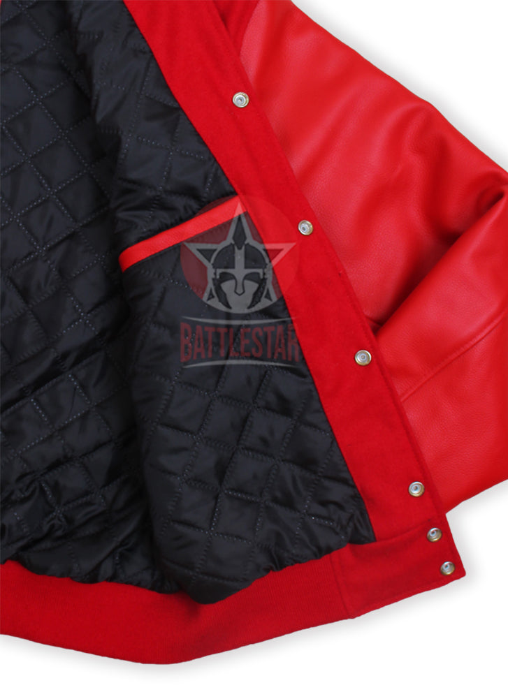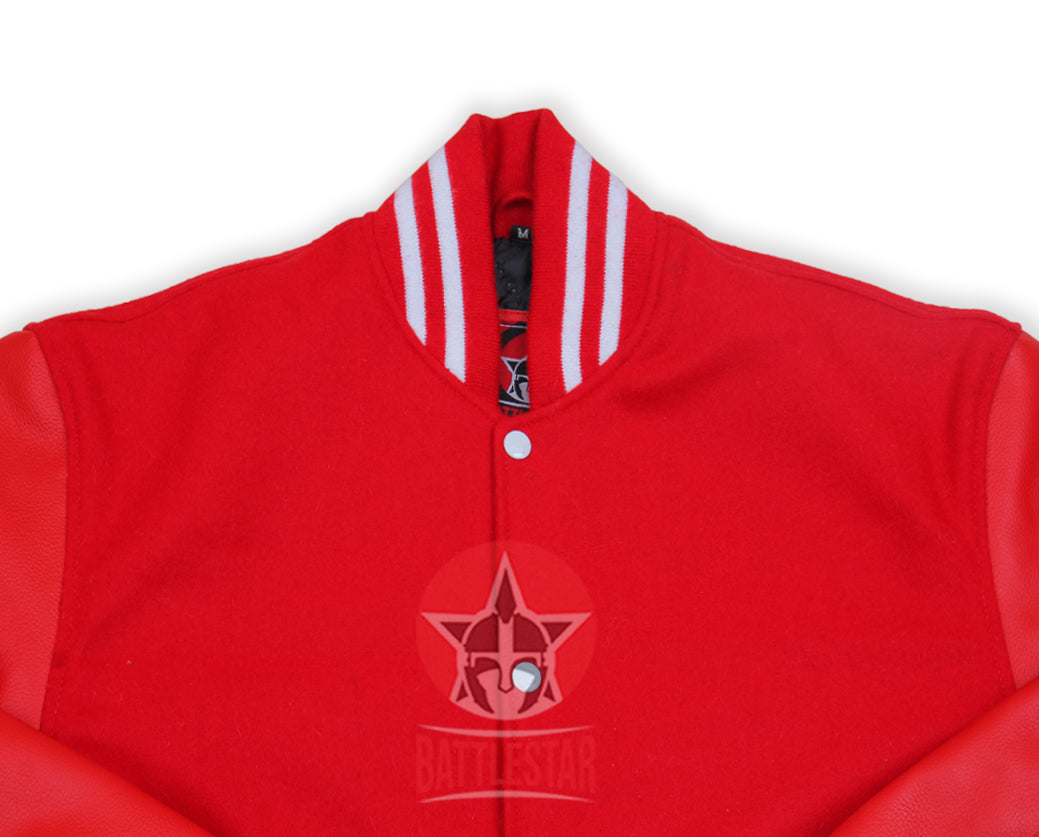 Red Wool & Leather Baseball Bomber Varsity Jacket